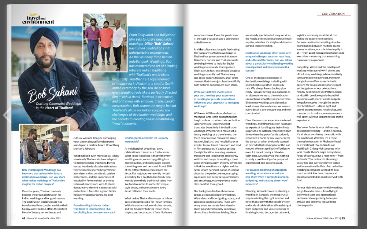 In 2006, he got his lucky break when a large banner Bollywood film assignment led to the launch of Indo-Bangkok Films. Over time, services expanded into corporate events, destination weddings, and luxury experiences, offering seamless planning, privacy, and arrangements that create unforgettable celebrations and refined getaways.